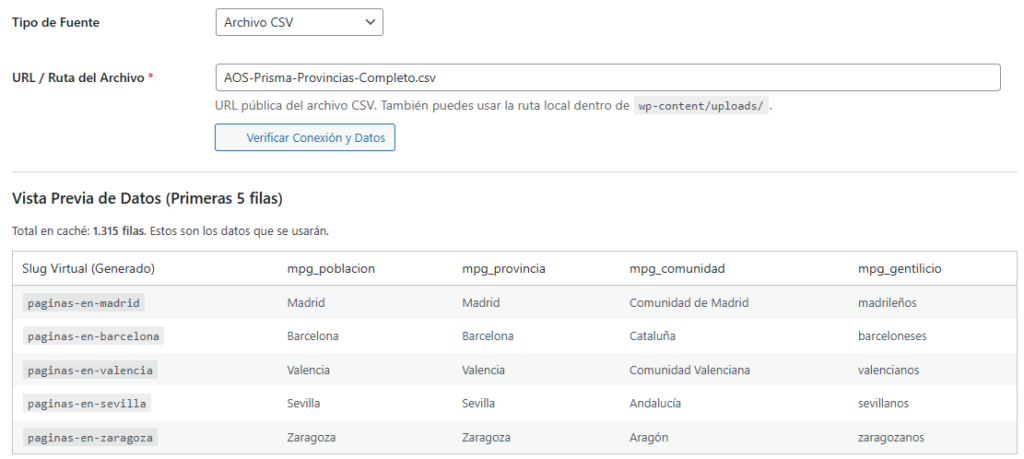 A diferencia de otros plugins que crean miles de Entradas o Páginas reales en tu WordPress (haciéndolo lento e inmanejable), AOS Prisma virtualiza el contenido.