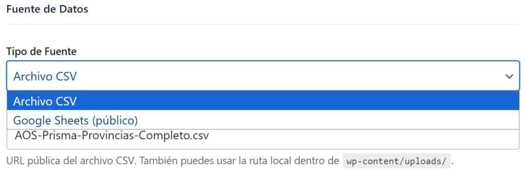 - Fuente de Datos: Sube tu CSV o pega la URL de Google Sheets.