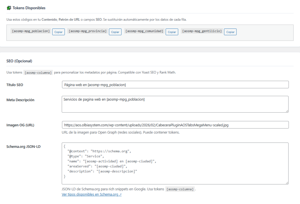 - Ejemplo: `[aosmp-servicio]-en-[aosmp-ciudad]`